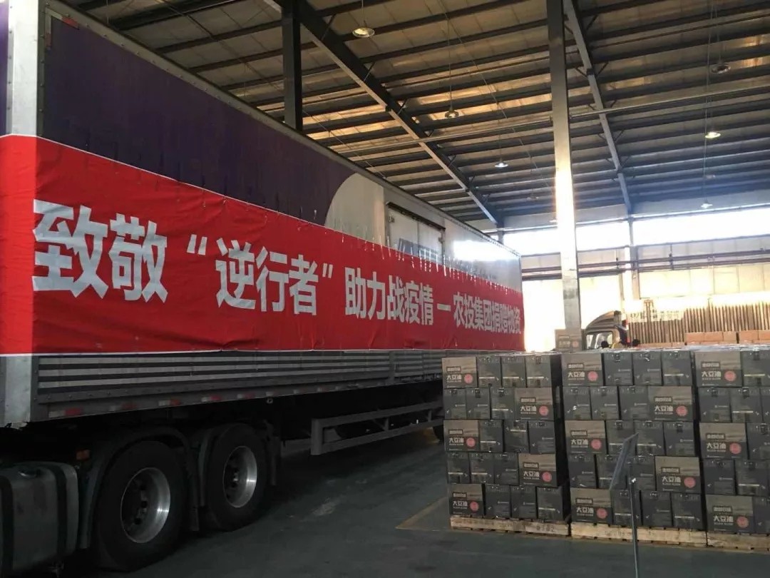 2月20日上午7时30分,满载“金谷农场”品牌稻花香大米、一级豆油以及“龙江丁香花”品牌苏打水等价值100万元捐赠物资的多辆货车从省农投集团驶出,驶向黑龙江省中医药大学附属第二医院南院(黑龙江省“小汤山”模式医疗救治中心)和哈尔滨医科大学附属四家医院进行物资捐赠。
