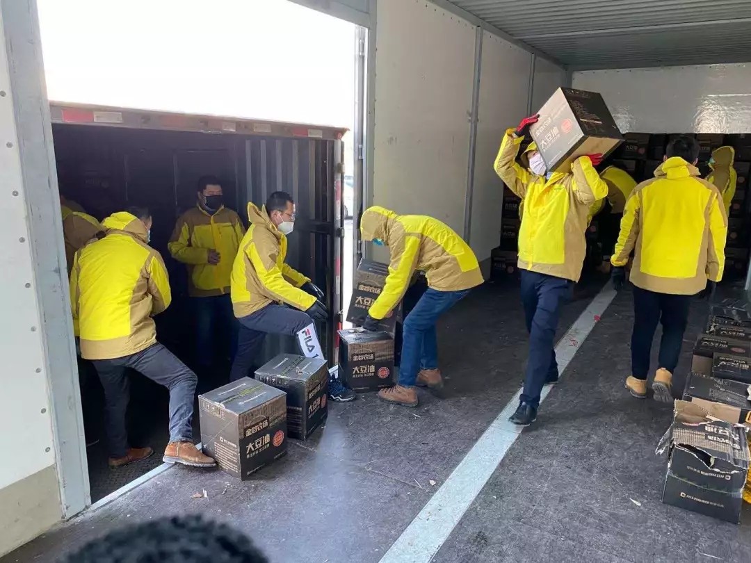疫情当前,装卸工人紧缺,农投员工亲自上阵,价值百万元的物资在农投人的接力下,一箱箱“金谷农场”大米、一箱箱大豆油和苏打水运进捐赠医院,及时送到奋战一线的医务工作者手中,责任和爱在农投人的手中传递、传播……